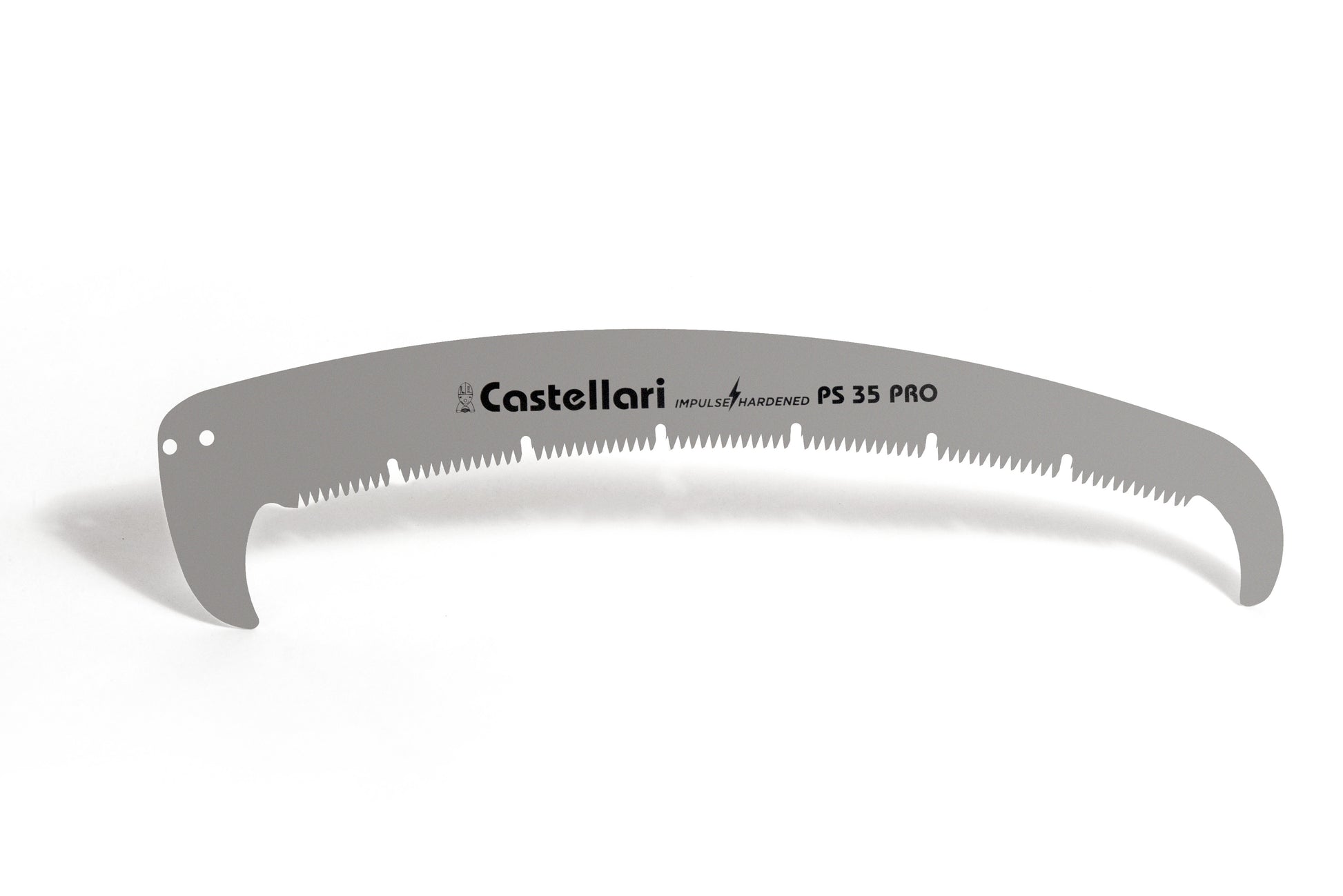 The 14-inch (35 cm) curved blade is made of carbon steel and sharpened to 3 levels, then pulse-hardened for durability. It features sharpened knife-edge hooks on the top and bottom for trimming small stems and clearing cut branches. The aggressive tooth pattern quickly clears material for faster cuts. The blade is finished with a rust-resistant hard chrome finish.